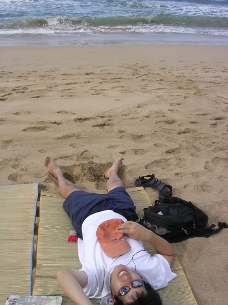 Chris lazing on Hanalei Beach in Kauai.
