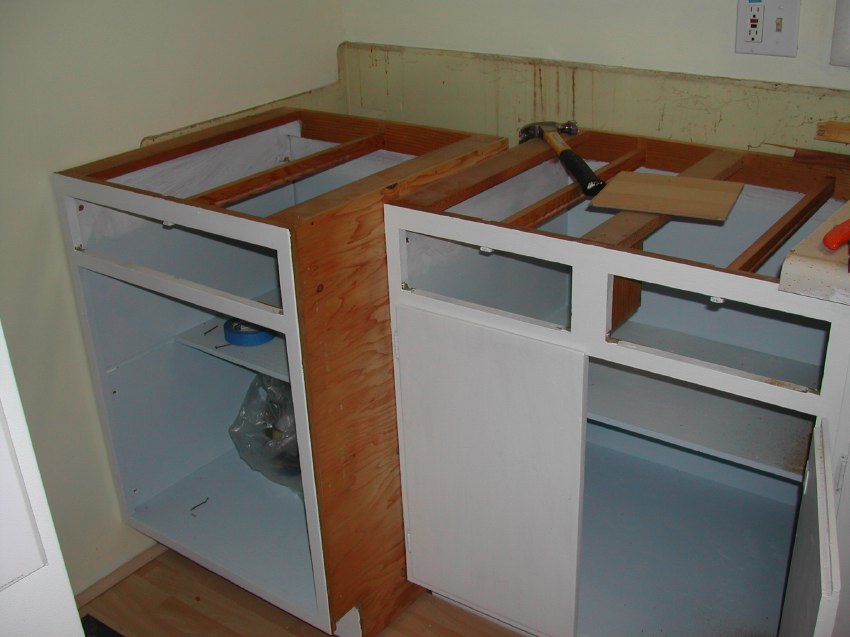 We wanted to install a dishwasher, so we removed one of the cabinets to make space.
