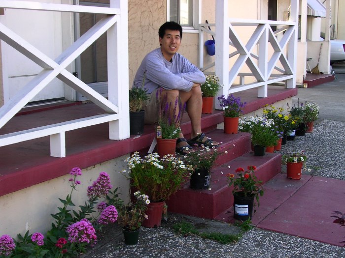 Our plants (and Chris) on the front porch.