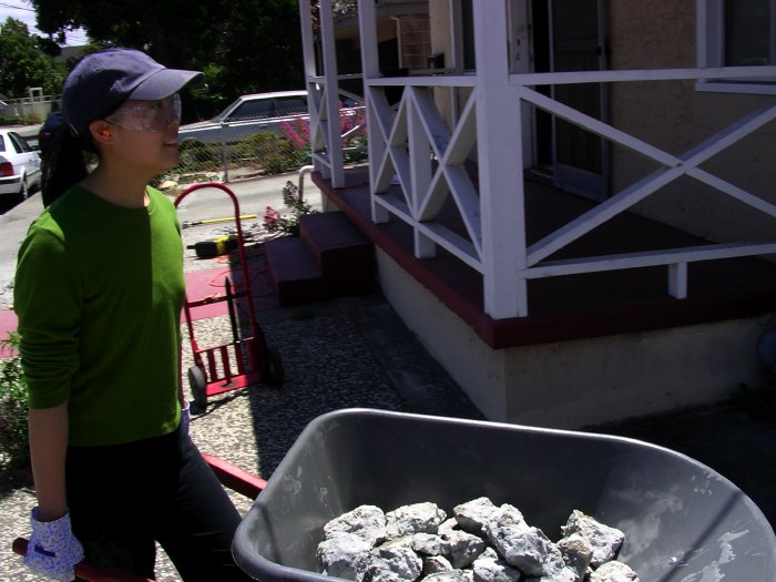 We also spent time hauling away the concrete chunks with our new wheelbarrow.