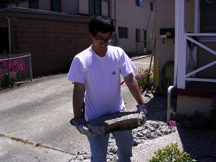 One of the large heavy pieces of concrete (the specific gravity of concrete is ~2.5).