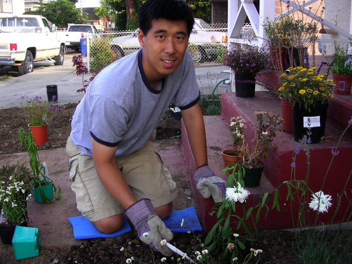 Chris plants some shasta daisies that aren't thriving, but we'll give it some time.